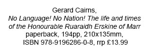 THE HONOURABLE RUARAIDH ERSKINE OF MARR led a life very much on the move. He has left us no personal papers, although his stamp is across the personal papers of many others, and he has been written about by several eminent scholars. It seems that there is something in Erskine of Marr that draws in writers and scholars of Gaelic and of Scottish nationalism. Maybe it is his eccentricity, maybe it is his boundless energy and commitment and maybe it is because he had something to say that is still relevant to students of language and nationalism. Erskine had his supporters, most notably the historian and Gaelic language activist, Seumas Mac A’ Ghobhainn, who hailed him as a ‘forgotten Gaelic patriot’. He has had his critics too: the BBC’s Andrew Marr, wrote that ‘in colloquial terms he was a bit of a nutter’. However, Hugh MacDiarmid said regarding Erskine: ‘Justice will be done to him yet with a biography’. This is it and it is long overdue. GERARD CAIRNS is a socialist historian from Glasgow and a formder Secretary of The John Maclean Society. He is the author of The Red and the Green: a portrait of John Maclean.